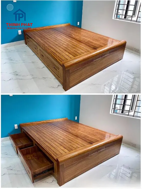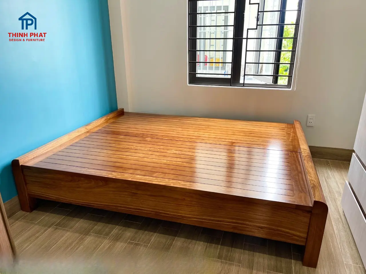 (Hình ảnh mẫu giường gỗ được chụp thực tế)