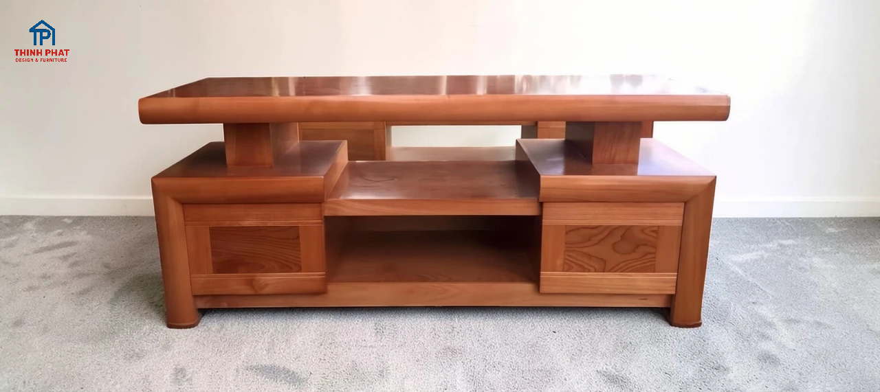 Kệ tivi Nhật gỗ xoan đào Gia Lai mang đến sự tối giản nhưng không kém phần sang trọng. Thiết kế tầng xếp lệch độc đáo tạo điểm nhấn thị giác và giúp tối ưu công năng. Với tone màu gỗ ấm, kệ phù hợp cho nhiều không gian sống từ nhà phố đến căn hộ hiện đại, đặc biệt là các không gian ưu tiên sự gọn gàng, thanh thoát.