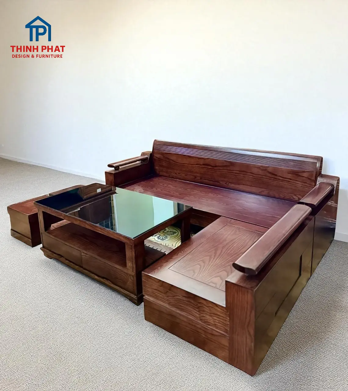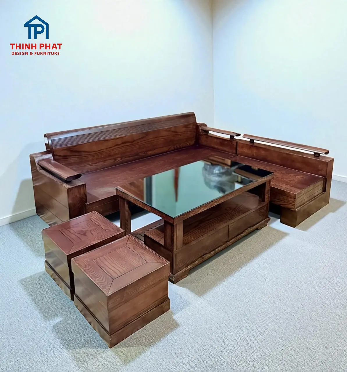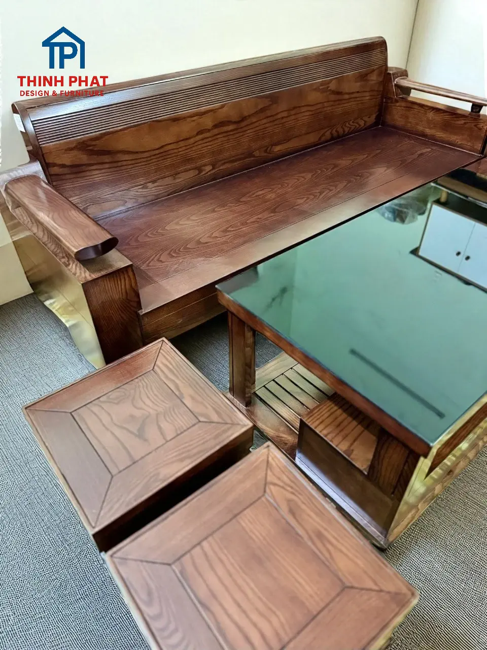 Ghế Sofa gỗ Sồi mẫu Góc Tay trứng tựa cong | Nội Thất Thịnh Phát