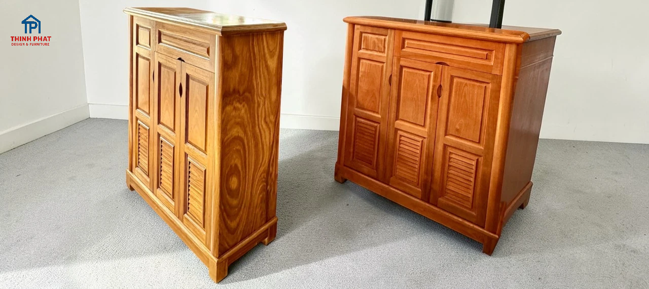Cánh tủ với họa tiết truyền thống, đục lỗ thông thoáng – hạn chế mùi giày