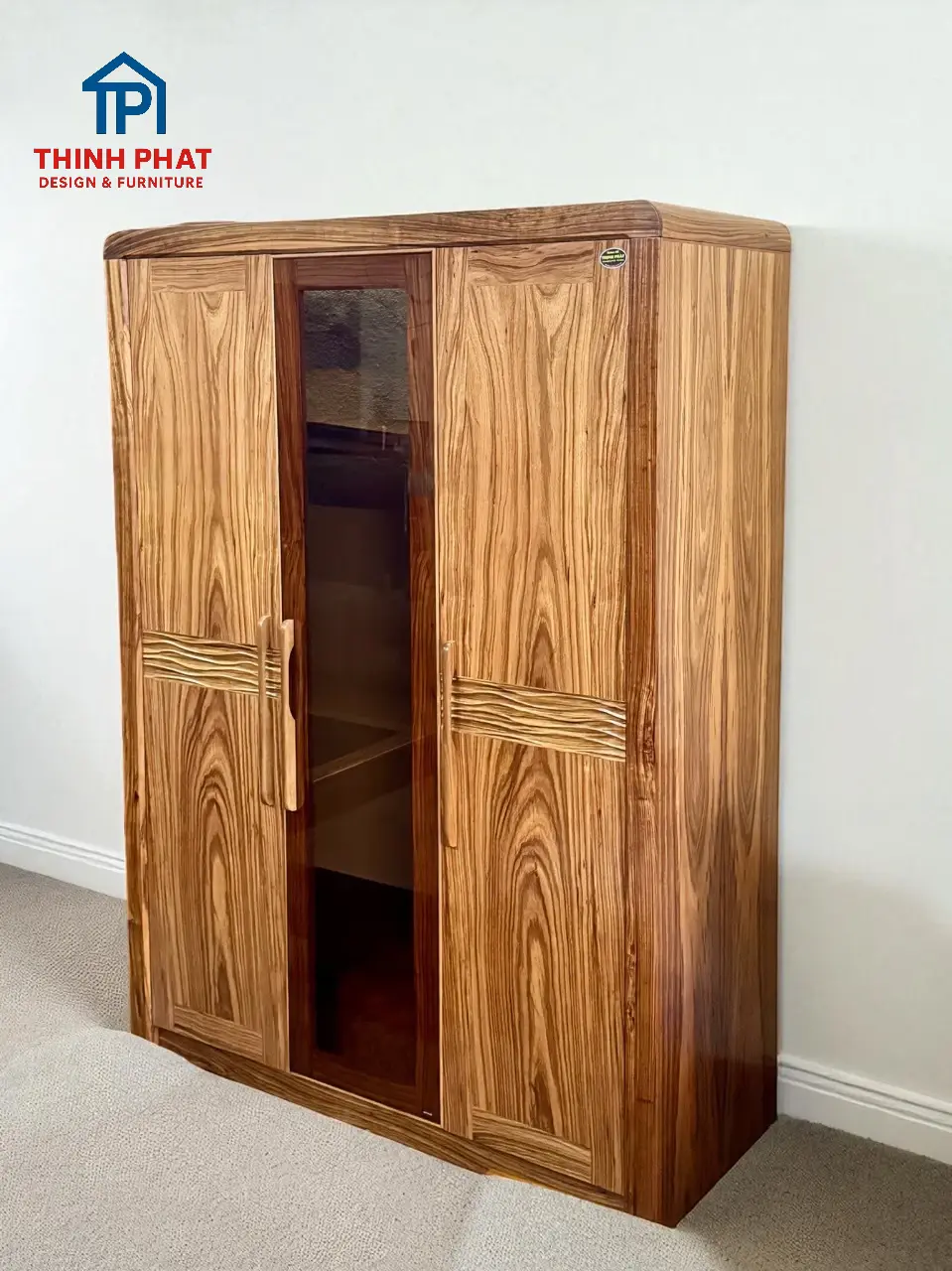 Tủ quần áo gỗ Hương Xám 3 cánh sóng kính | Nội Thất Thịnh Phát
